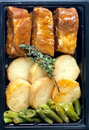 Costiță de porc in sos bbq și cartofi cu păstăi verzi